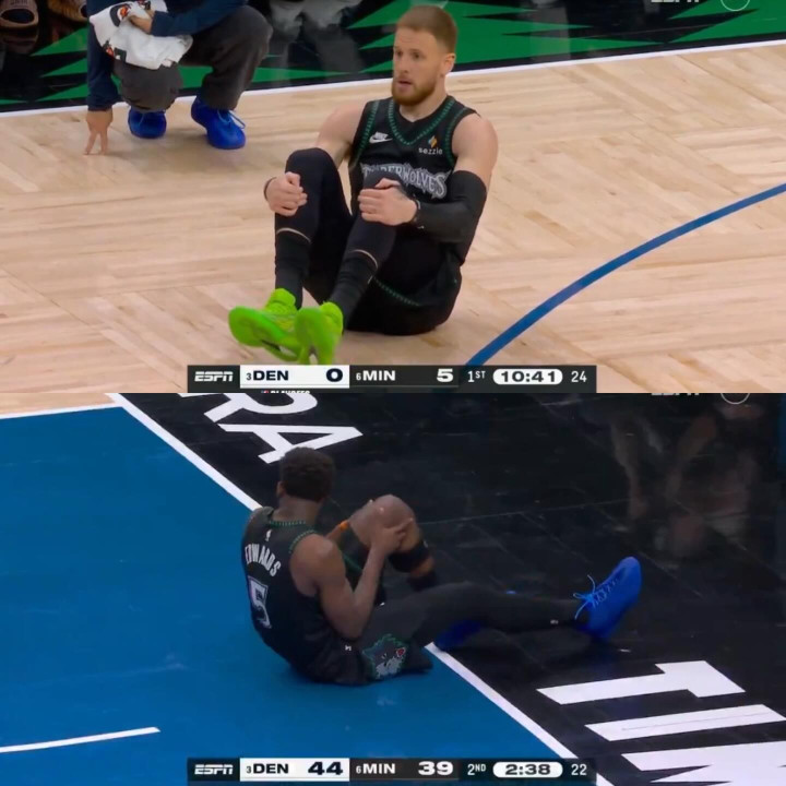 明尼苏达森林狼队以112-96的比分,击败丹佛掘金,目前以3比1的比分领先丹佛掘金队。对于森林狼来说,拿下系列赛的赛点,并没有什么值得他们庆祝的事情。因为在这场比赛中,球队有两名核心球员,遭遇了伤病困扰,将影响他们这个赛季的季后赛之旅。